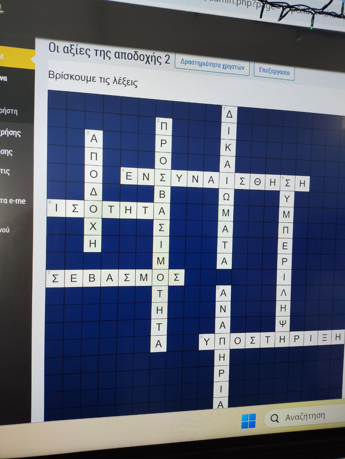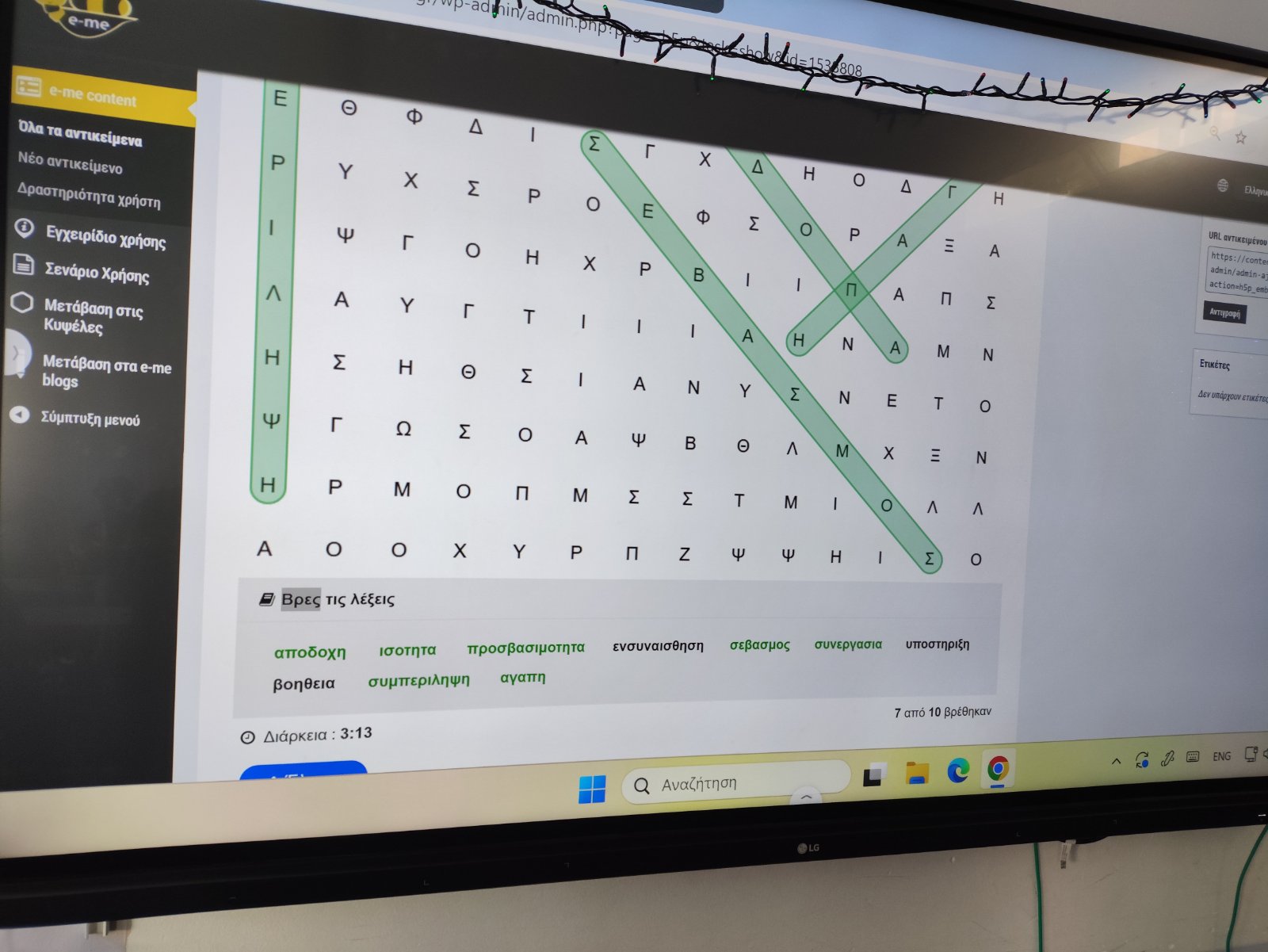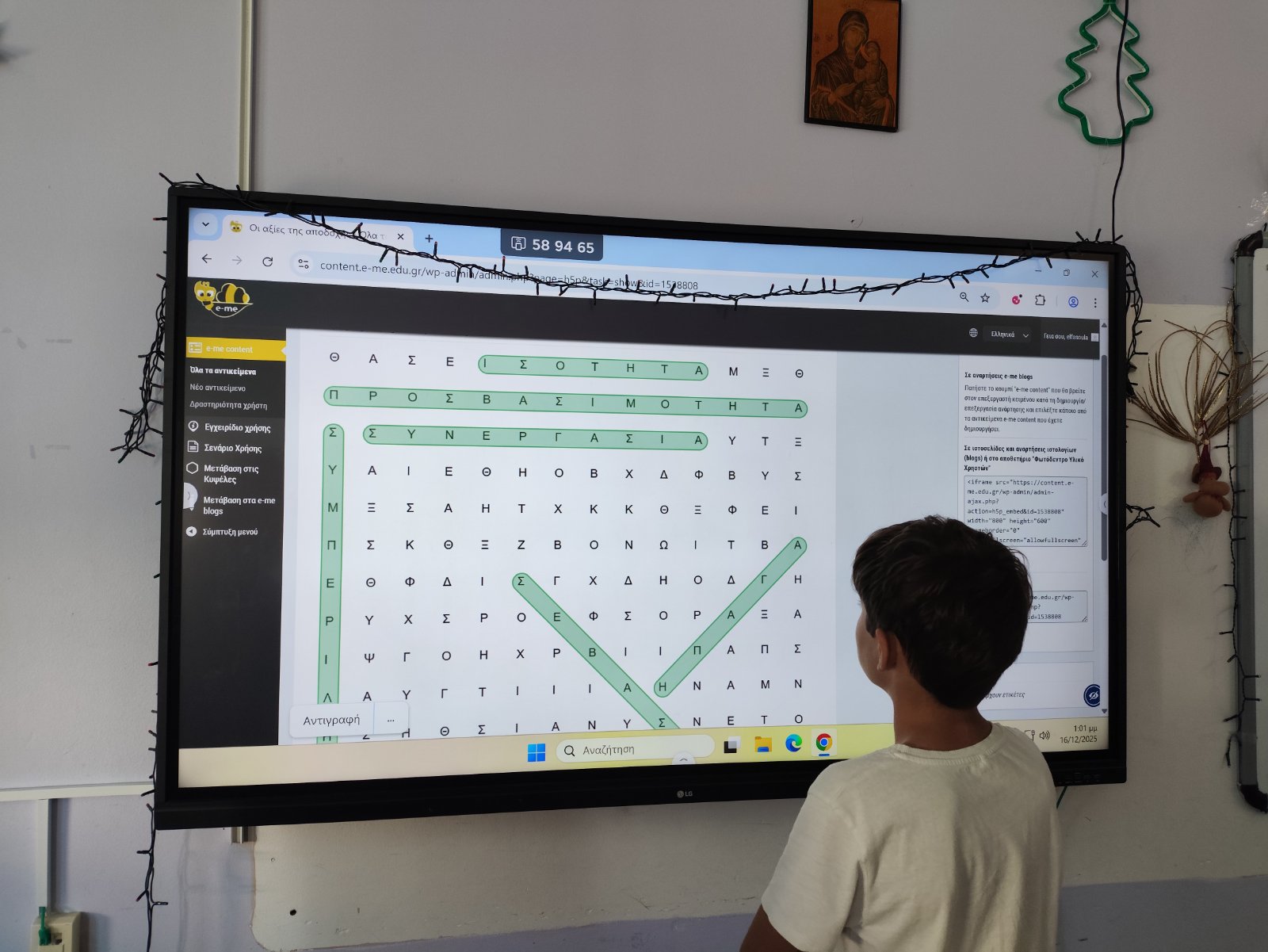 Κατόπιν, τα παιδιά συμμετείχαν σε διαδραστικά παιχνίδια (κρυπτόλεξα, σταυρόλεξα) στην πλατφόρμα eme, όπου κλήθηκαν να βρουν έννοιες και αξίες που αναδύθηκαν μέσα από το ντοκιμαντέρ.